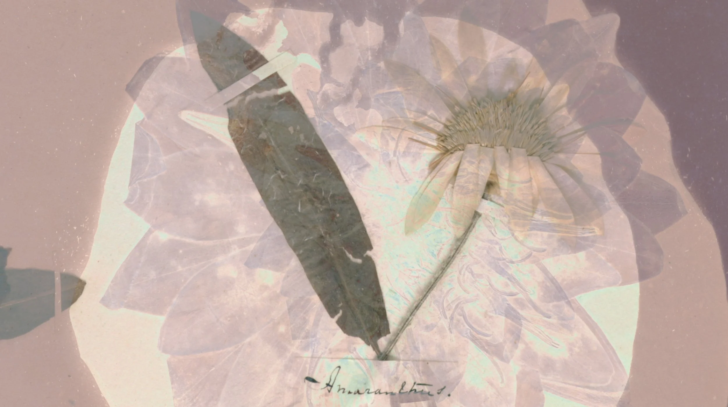 Created for the Emily Dickinson Museum by artists Lisa McCarty & D. Edward Davis, the installation features Emily Dickinson’s iconic white dress as a projection screen for images of the Poet’s herbarium. Over 400 images of individual flowers collected by Dickinson are shown as part of McCarty’s video projection, together with a haunting soundscape of hymns, drones, and birdsong by Davis. As a whole, the installation is inspired by Dickinson’s practice of attentively, and ecstatically, responding to elements of the living world through both her poetry and her herbarium.
