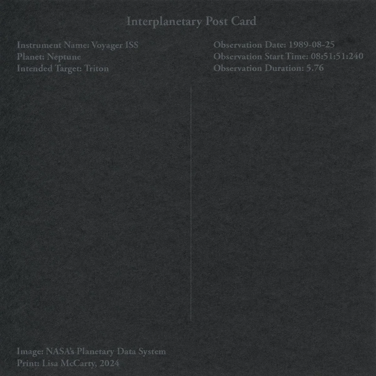 The Voyagers’ full archive is vast, but difficult to find and navigate. While the archive is public, I doubt many non-scientists get to see these strange and beautiful visions of our closest neighbors. With this in mind, I decided to reimagine Voyagers’ dispatches as postcards – small prints designed to be held, admired, and circulated.